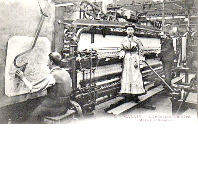 An early example of the embroidery machine in about 1890.