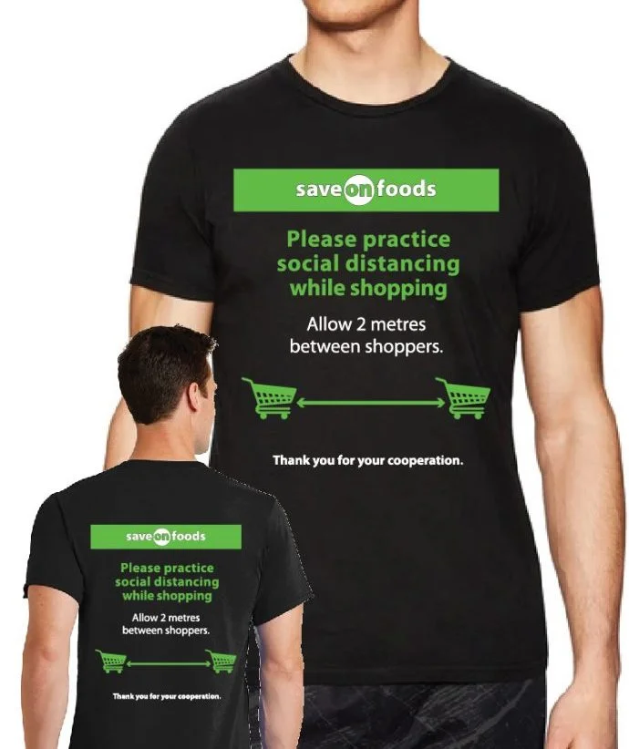 At GetBold we are looking for ways to help! We can’t make medical masks, but we can make T-shirts. Thanks to Park & Tilford Save-On-Foods for the idea and the first order – we thought we would offer it to other stores within driving distance from our facilities.