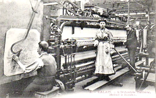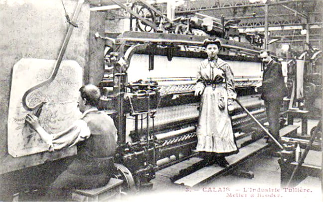 An early example of the embroidery machine in about 1890.