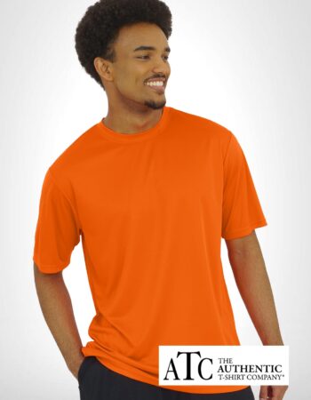 • 6.4 oz, 100% performance polyester interlock with wicking technology